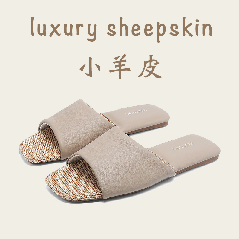 男夏 真皮拖鞋 情侣轻奢小羊皮家用凉拖鞋 女室内防滑轻便牛筋底四季