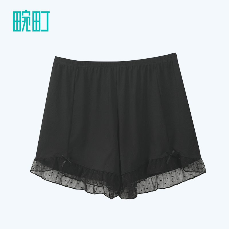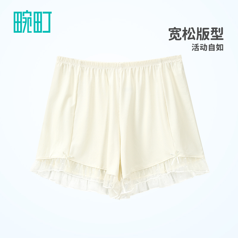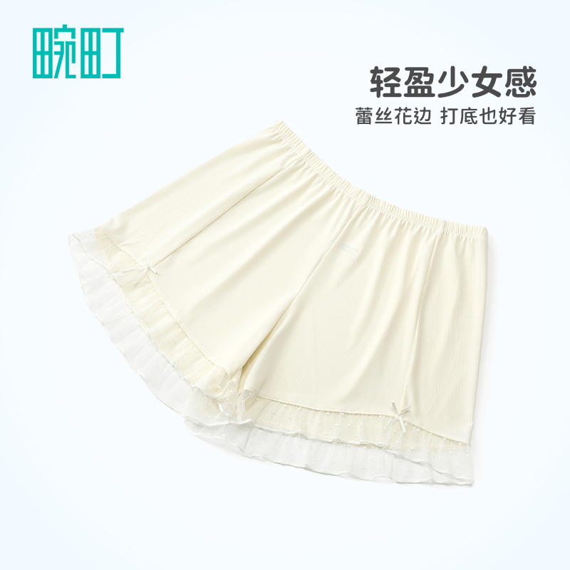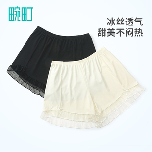 甜美蕾丝边轻薄罗纹泳布宽松打底平角短裤 畹町安全裤 防走光女夏季