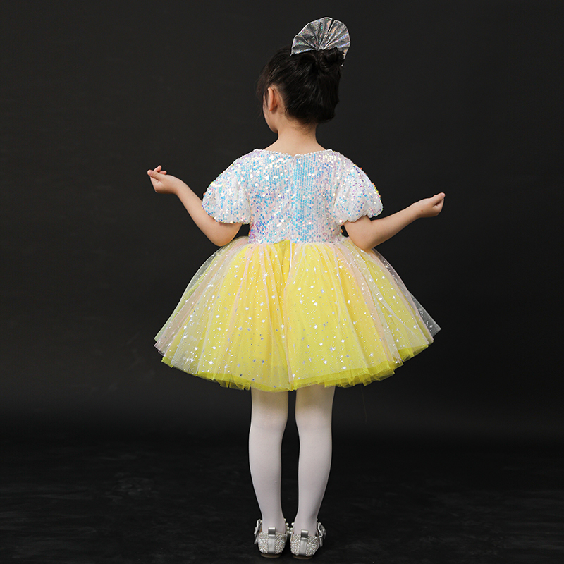 儿童演出服蓬蓬裙女童舞蹈纱裙小学生红歌比赛大合唱服装 朗诵表演