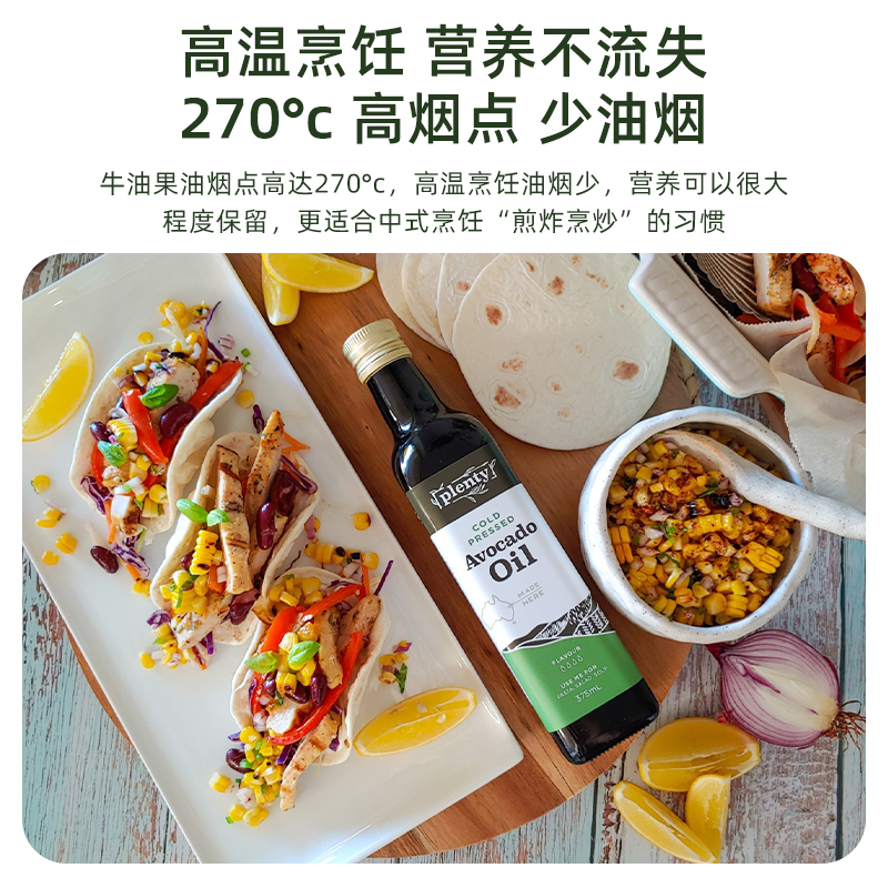 Plenty澳洲进口冷榨牛油果油鳄梨油宝宝儿童辅食用油直接喝热炒油