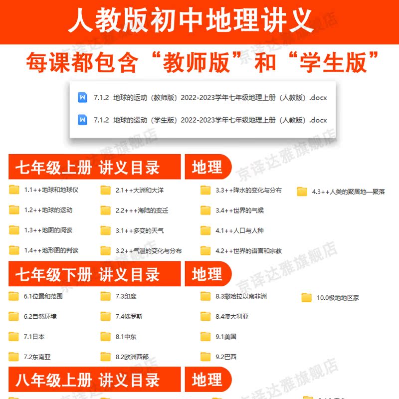 人教版 考点培优训练暑假预习练习题试卷 初中地理七八年级上册下册讲义专题知识点初一二分层拓展练习电子版