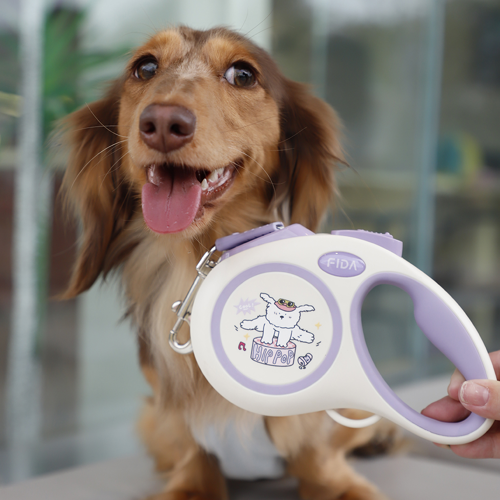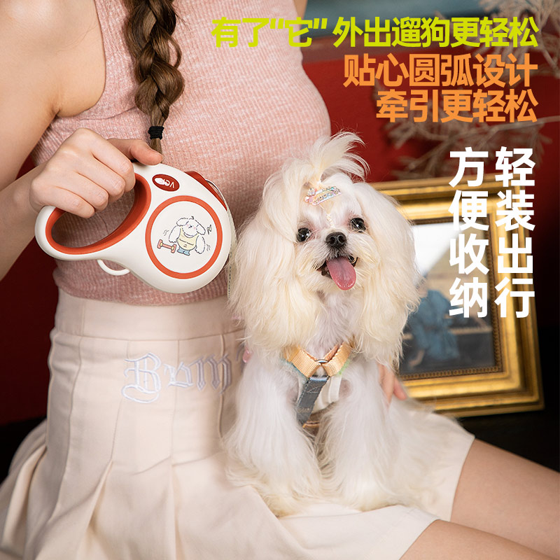 Fida菲达复古小狗自动伸缩牵引防爆冲反光织带大中小型犬猫咪牵绳