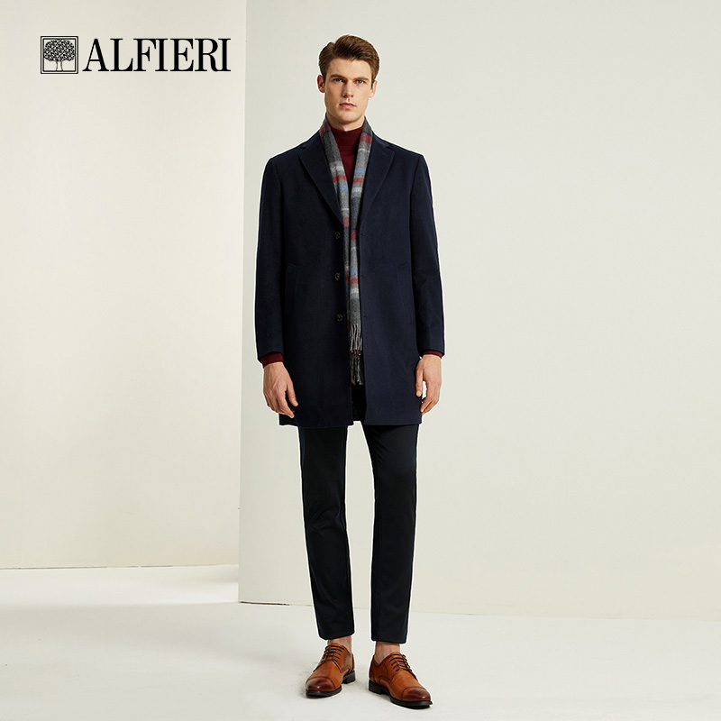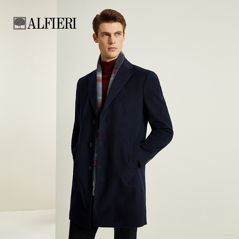 修身 艾法利 100%绵羊毛保暖大衣中长款 秋冬季 毛呢大衣 男装