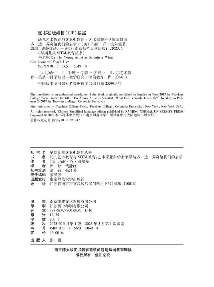 STEM教育 南京师范大学出版 艺术家兼科学家莱昂纳多达芬奇给我们 早期儿童STEM教育丛书 社 启示 幼儿园艺术教育中