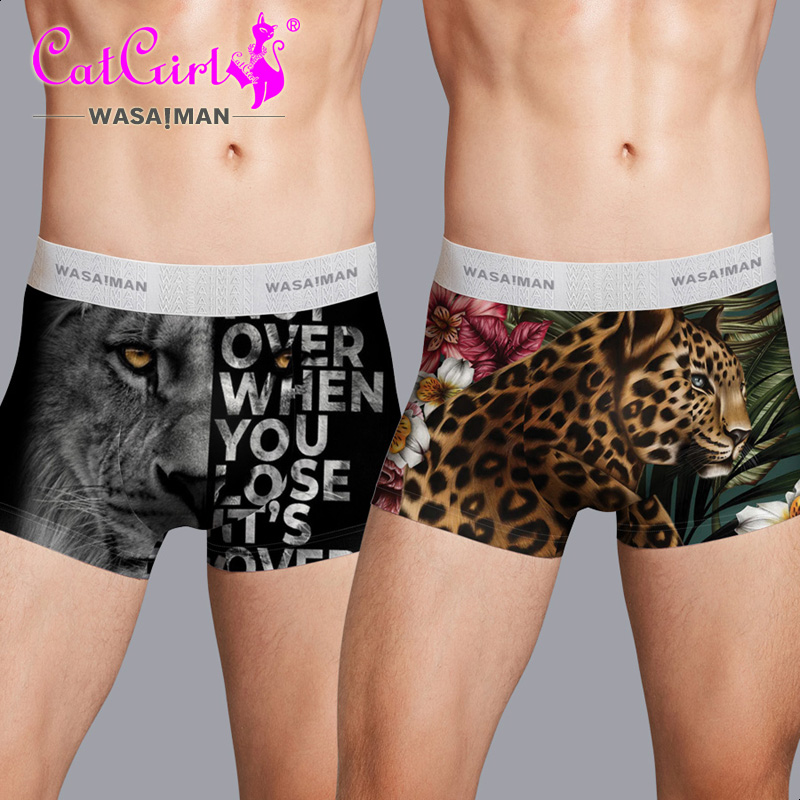平角裤 本命年老虎印花平角男士 短裤 男四角冰丝无痕男式 衩豹纹 内裤