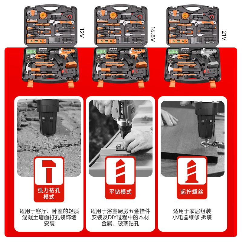 瑞德五金工具箱家用套装 维修木电工专用全套电钻多功能组合精品