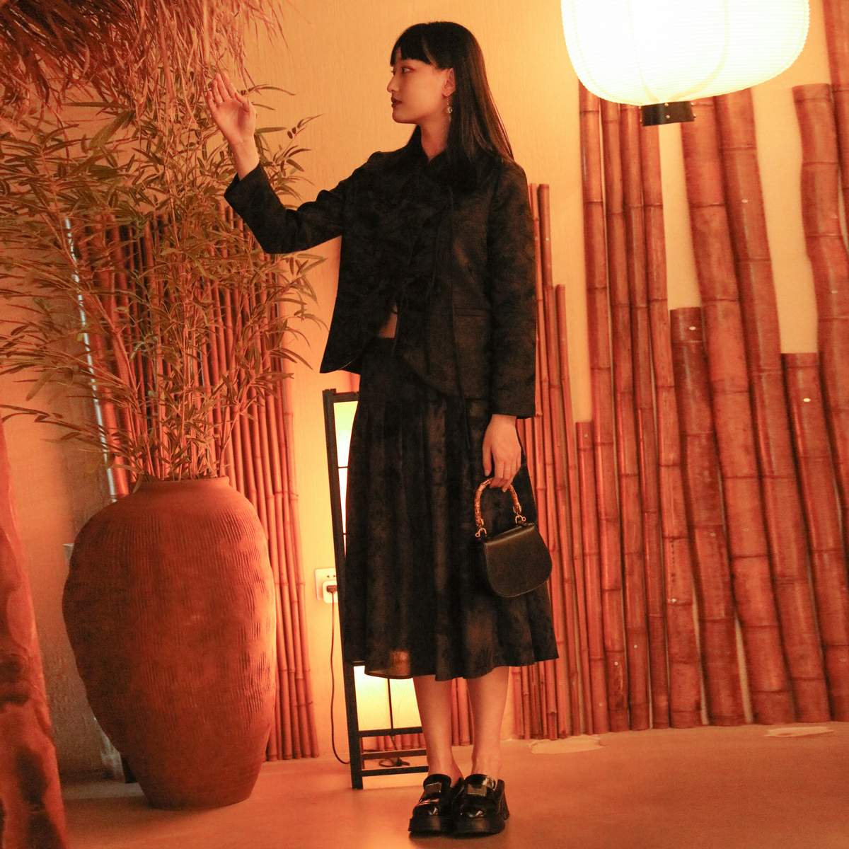 SLY春季 4481 韩系设计感两件套不规则百褶半身裙030HAZ31