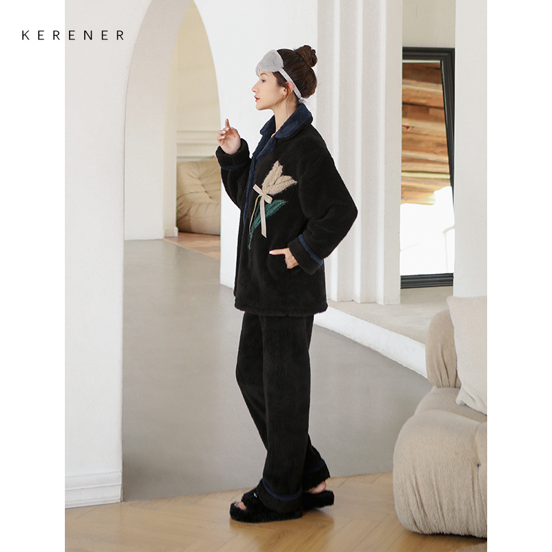家居服套装 可人儿冬季 保暖舒棉绒睡衣女高级感加绒加厚珊瑚绒大码