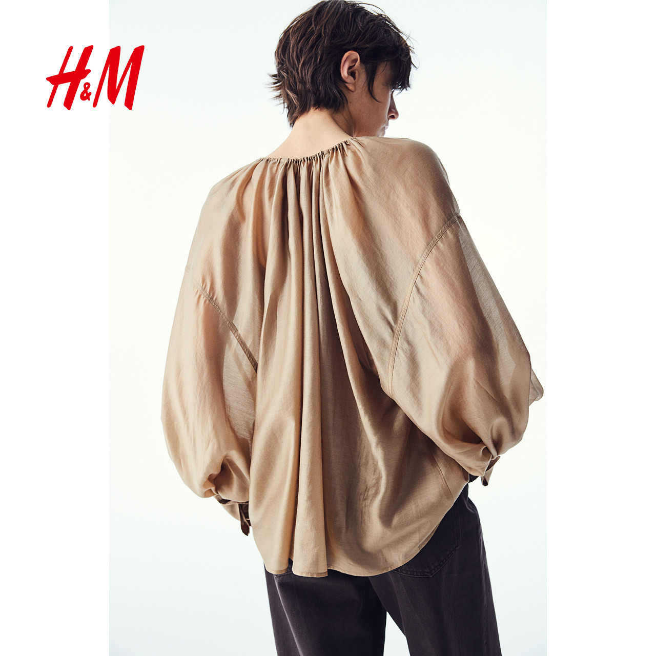 女士拉谷谷春秋长袖 木耳边白衬衫 LAGOGO法式 立领上衣 抗菌抗皱