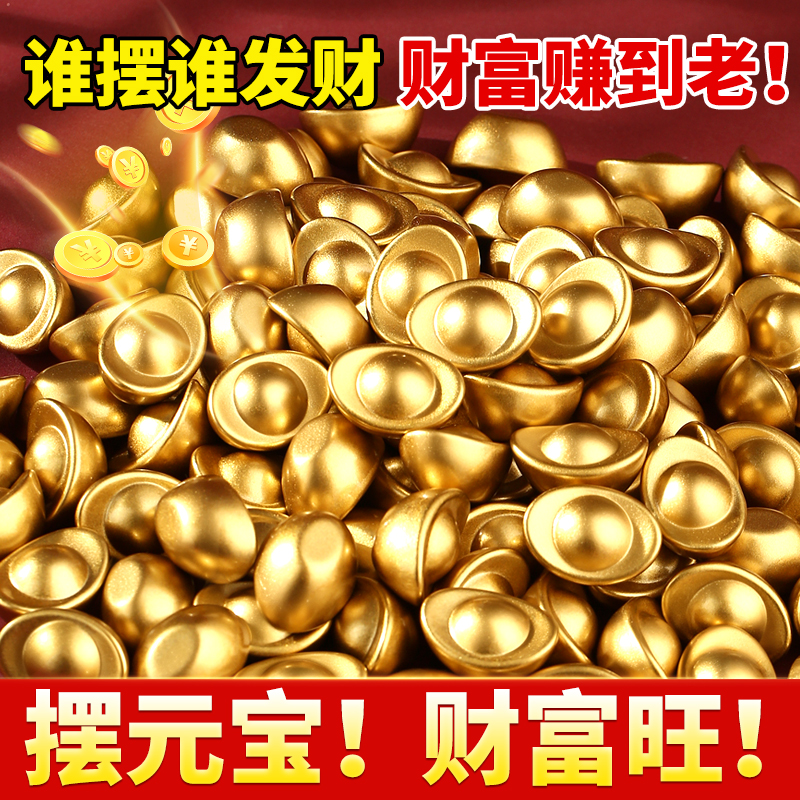 黄铜元 宝摆件金条开业乔迁财神聚宝盆大小号送礼工艺品 宝实心金元
