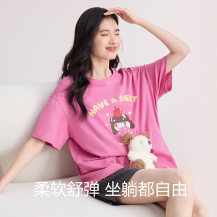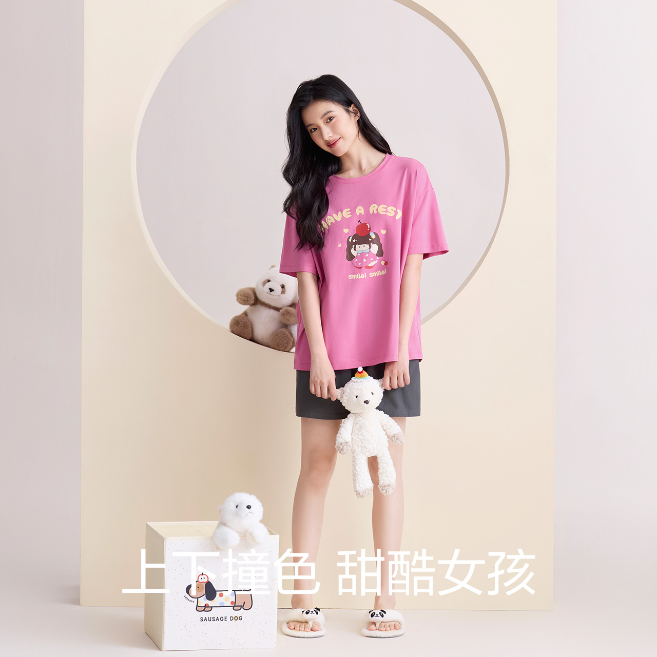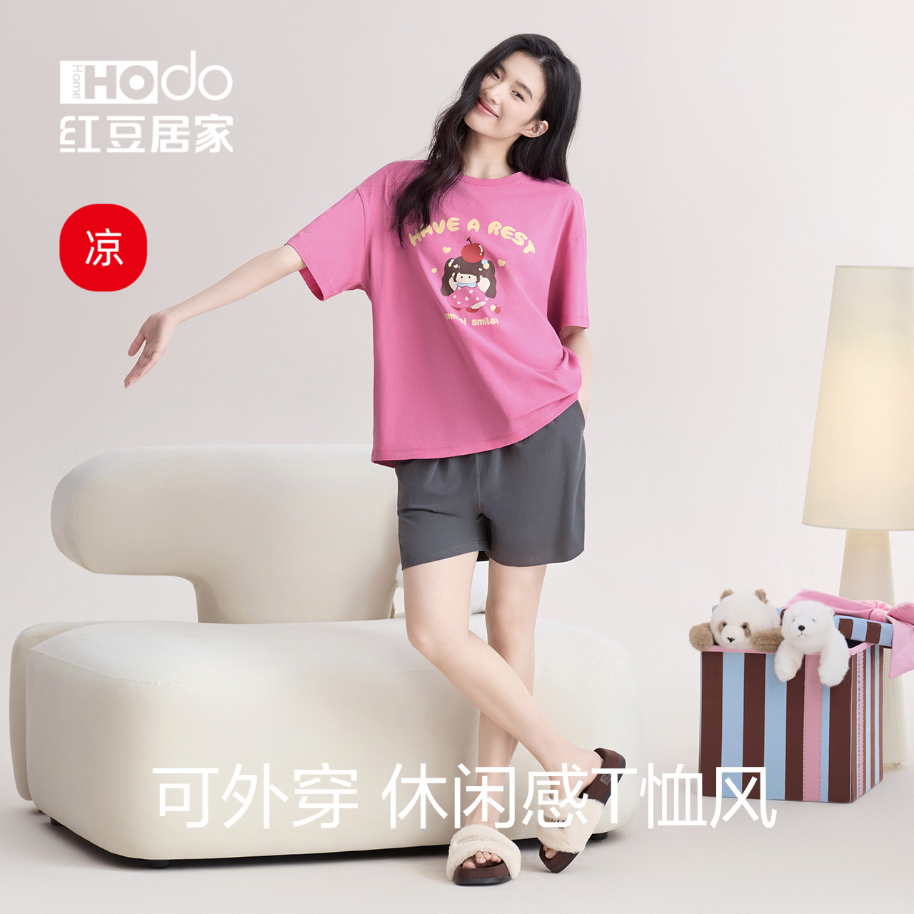 红豆可外穿睡衣女夏凉感棉套头短袖 夏天 休闲可外穿家居服T恤套装