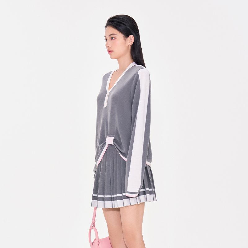学院风撞边羊毛打底衫 新款 针织上衣女士 CHAU.RISING2025春季 洲升