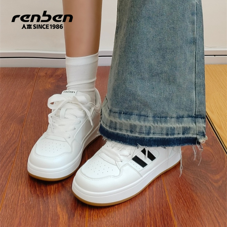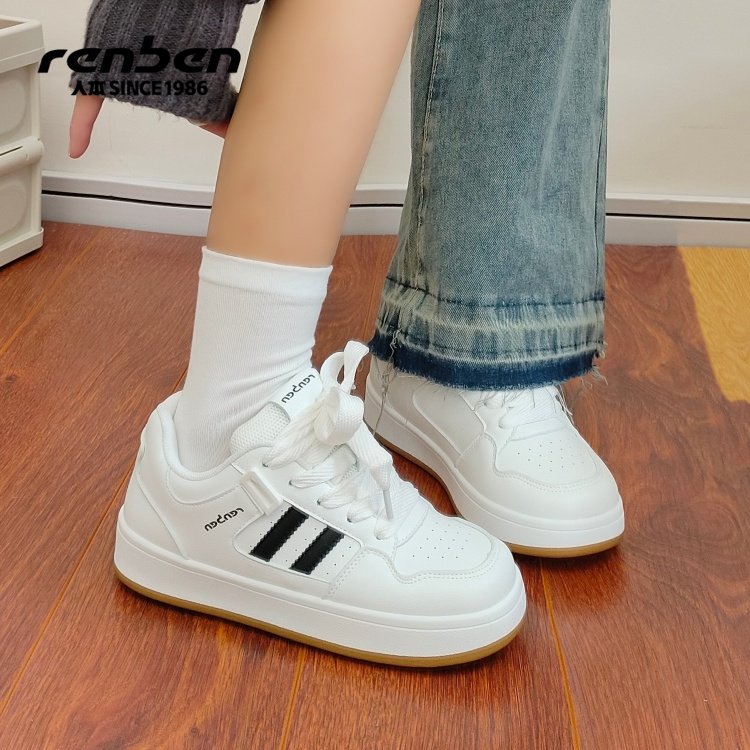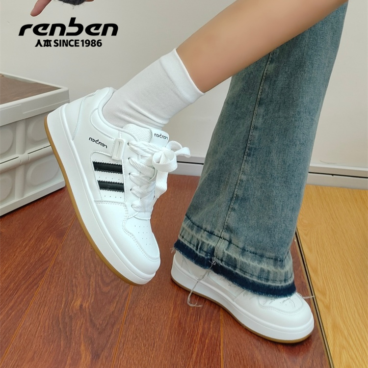 复古百搭厚底低帮透气轻便运动休闲鞋 人本黑色板鞋 女2025春秋新款