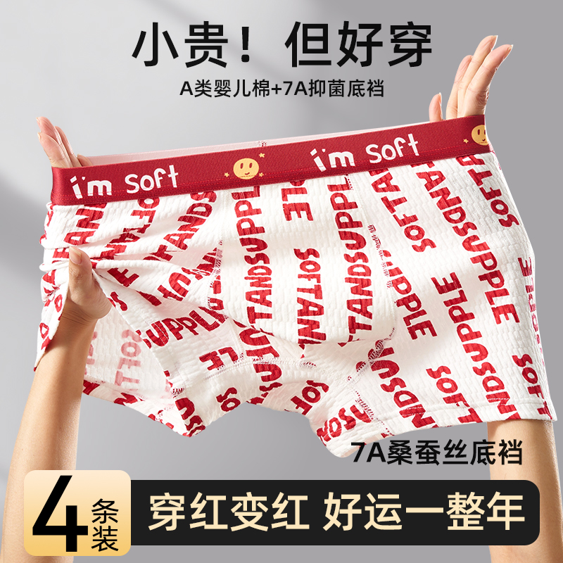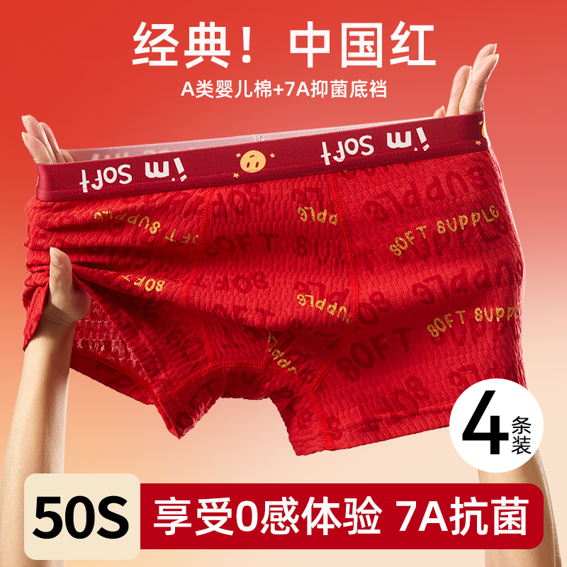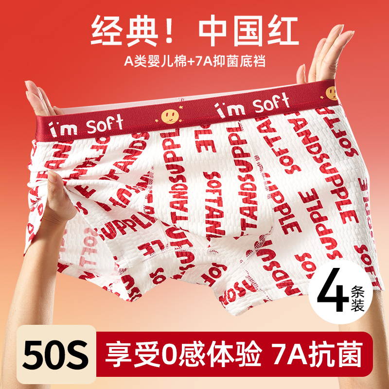 莫代尔纯棉透气裆本命年结婚红内裤 礼盒 蕉内红色计划3系男女内裤