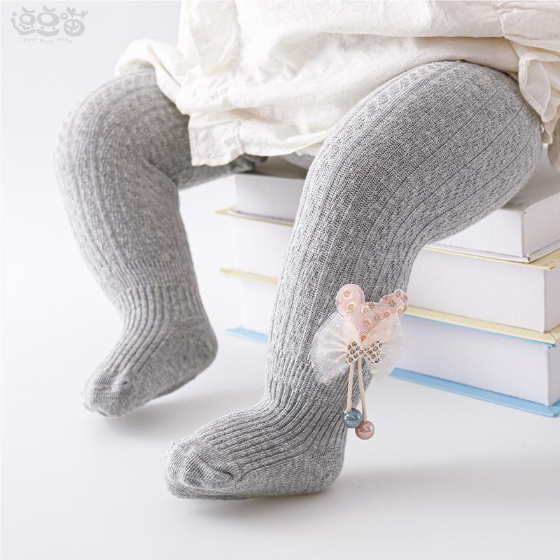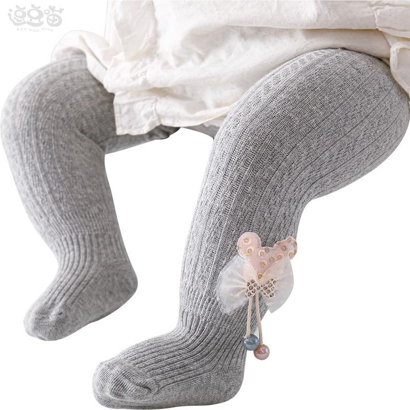 薄款 外穿棉纯打底袜宝宝白色连脚洋气儿童打底裤 袜春秋款 女童连裤