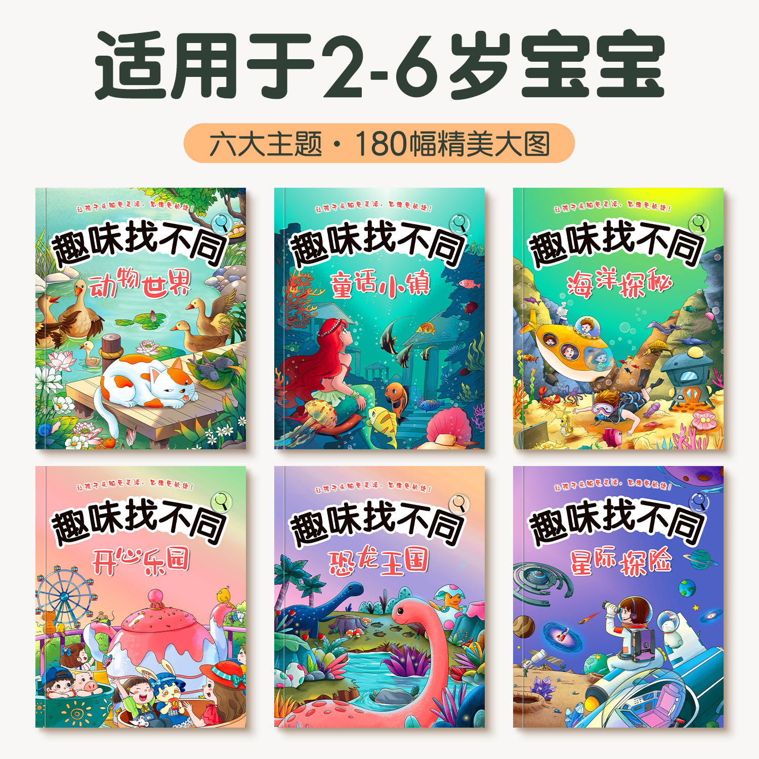 8岁以上全脑开发益智书提高注意力开发大脑玩具幼儿园找图案找茬书训练宝宝思维能力学前脑力 趣味找不同专注力训练书全套6册3