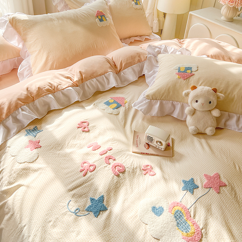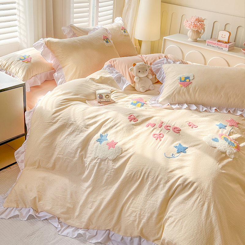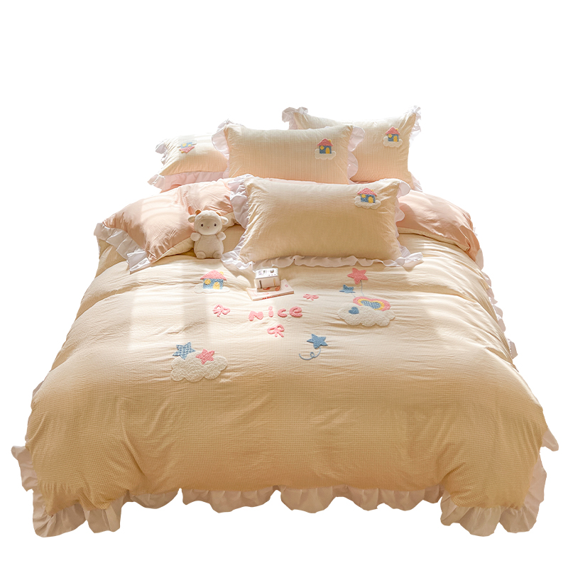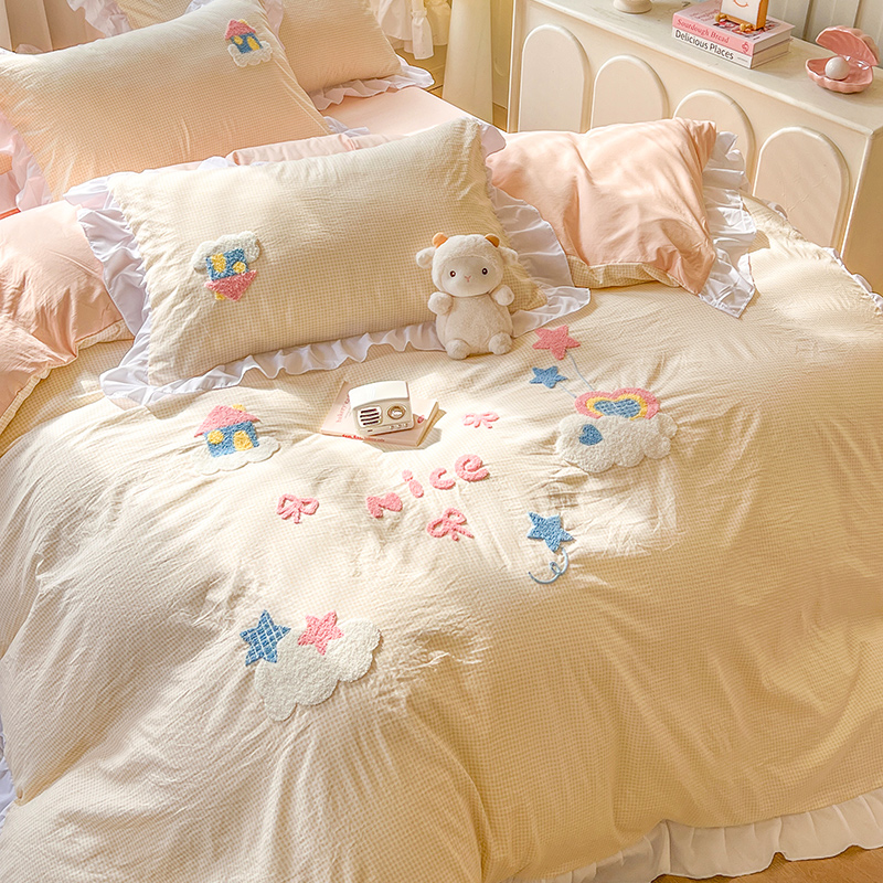 韩式 女宿舍三件套 公主风花边床上四件套非全棉纯棉被套床单床裙款