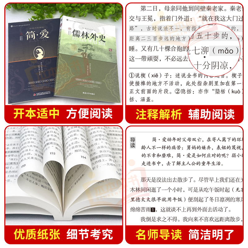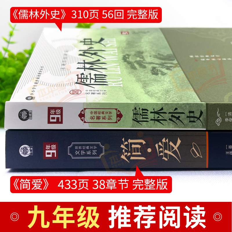 课外书初中课外阅读书籍9上下人教版 初三上册下册 语文书目水浒传白话文外传 名著吴敬梓原著完整版 简爱和儒林外史九年级必读正版