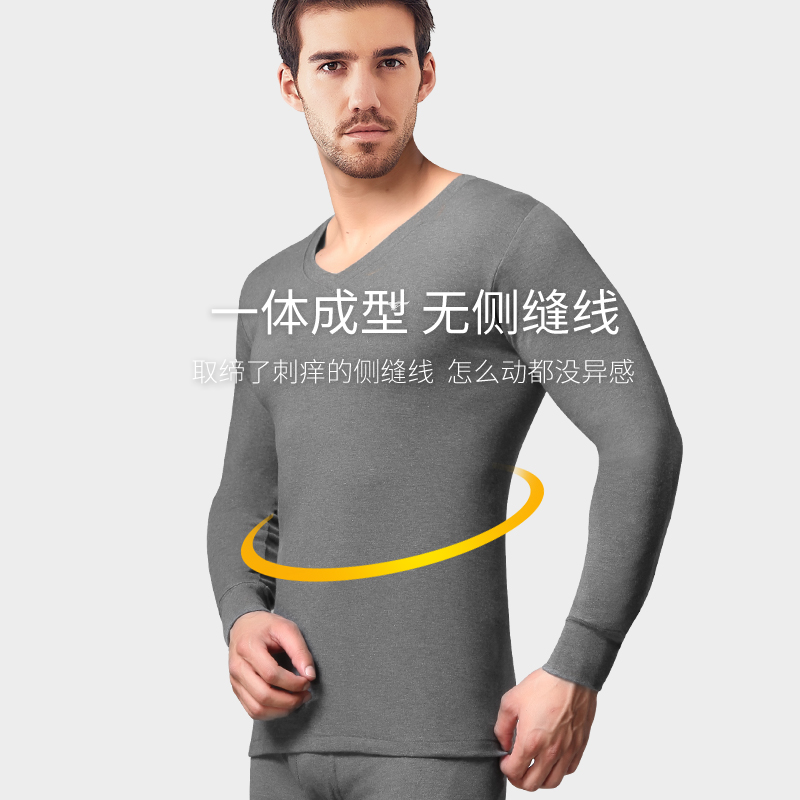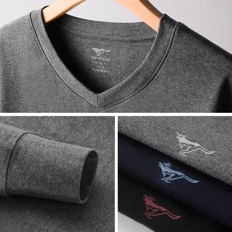 秋衣V领纯棉薄款 棉毛衫 保暖衣裤 打底衫 内衣 鸡心领修身 七匹狼男士