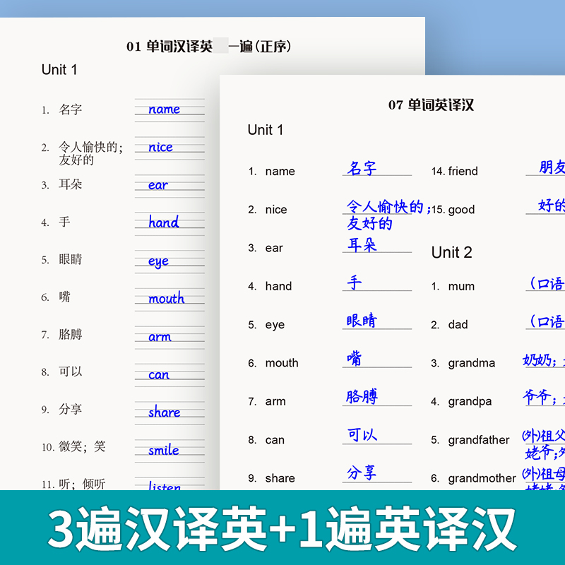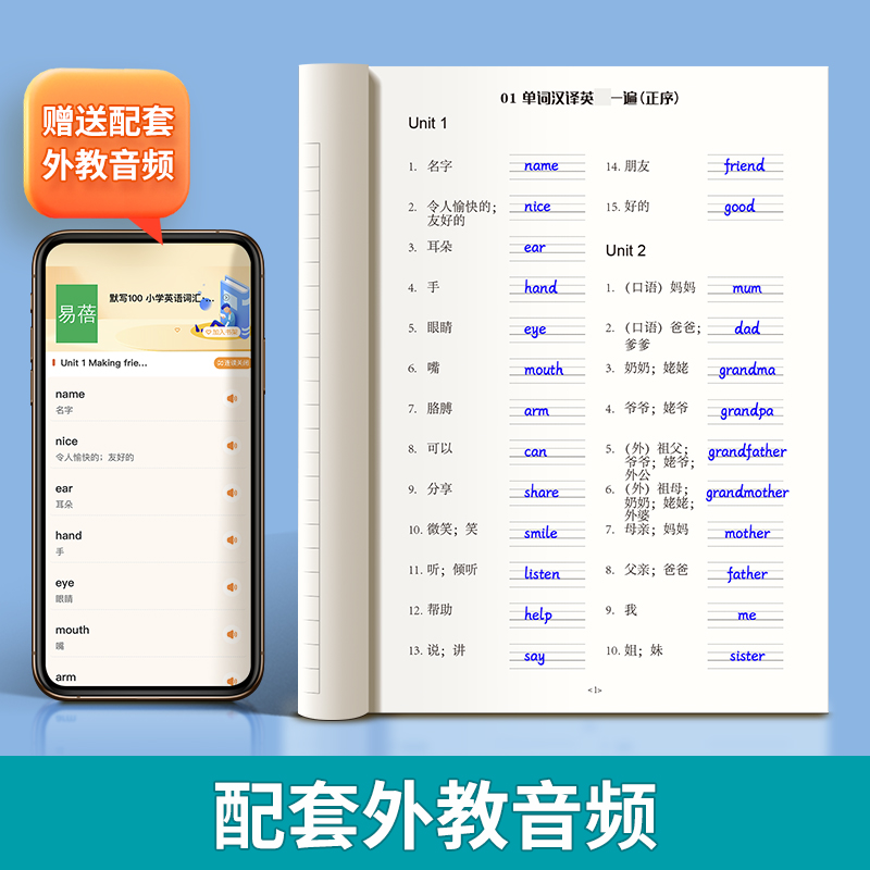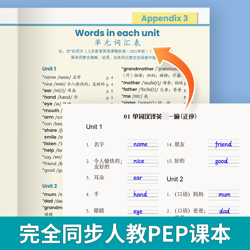 小学英语三四五六年级单词默写本听写本小学生英语本册单词记忆本 默写100人教PEP版 易蓓