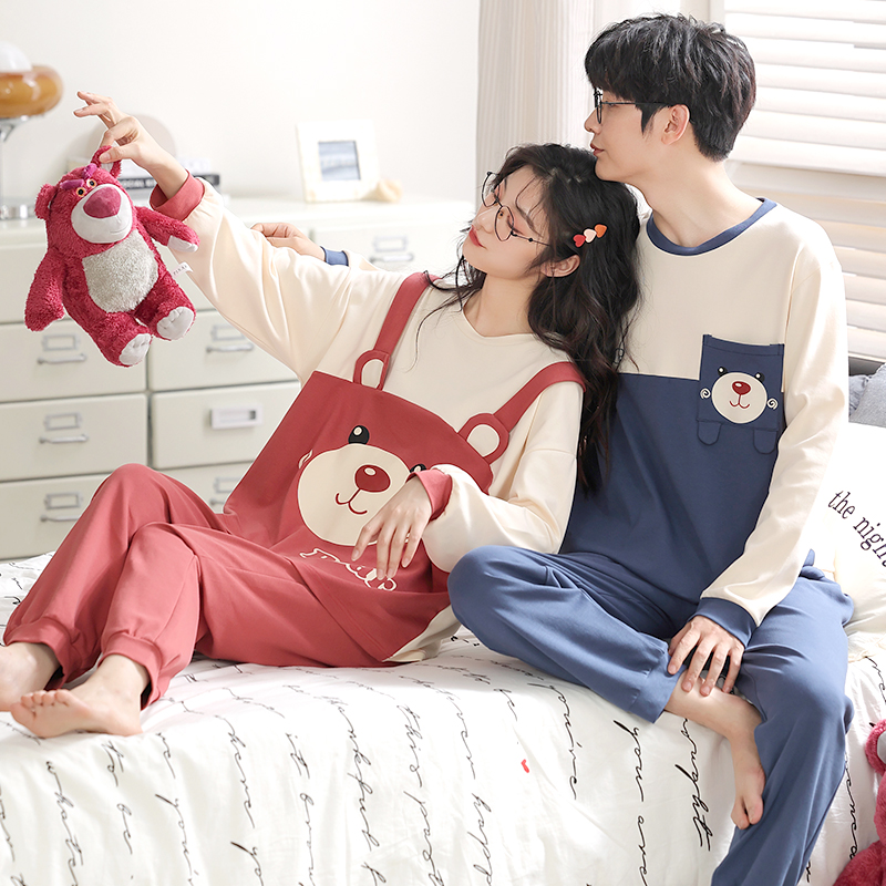 一男一女家居服 情侣装 情侣睡衣纯棉长袖 秋可爱卡通休闲2024年新款