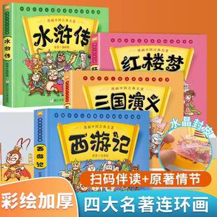西游记水浒传红楼梦三国演义全4册全套连环画彩色故事儿童读物课外 漫画中国古典名著四大名著中国古典文学儿童版 官方正版