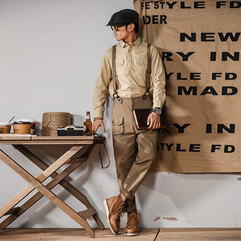 复古男装 长裤 新款 宽松休闲工装 吊带裤 男春秋美式 英伦风男士 背带裤