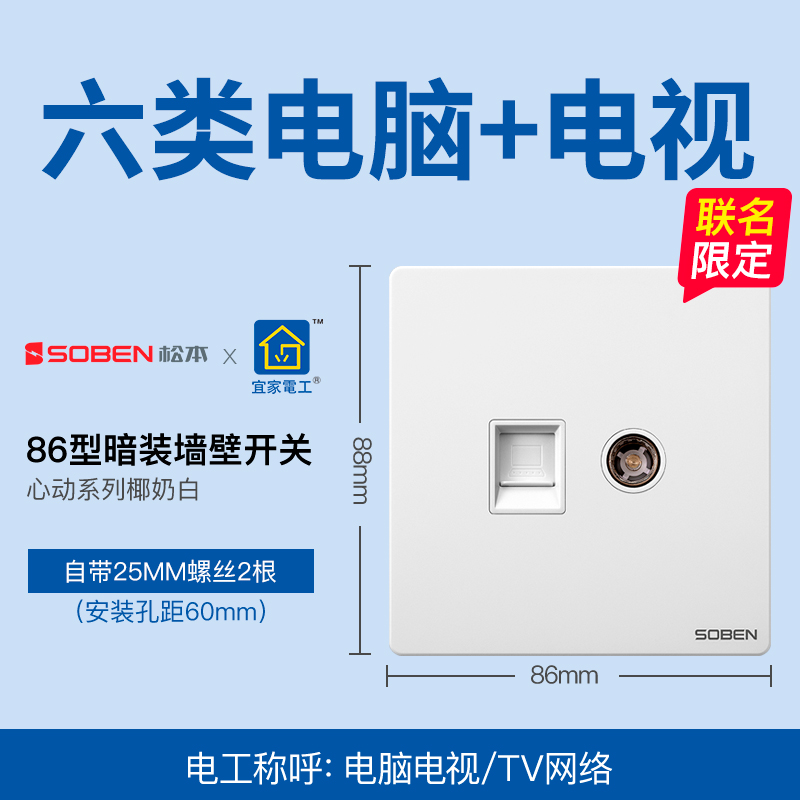 松本开关插座86型家用面板电视电脑电话墙壁暗装 插座开关六类弱电
