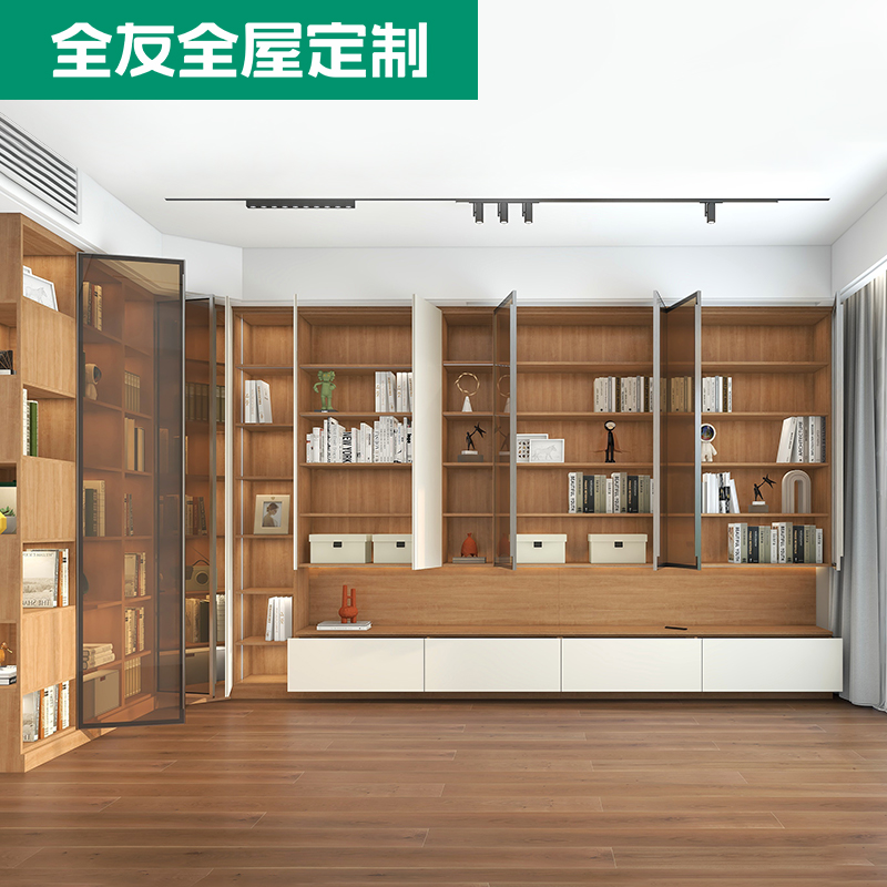 背景墙书柜一体客厅电视柜两边摆设旁边储物边柜侧柜单个组合靠墙