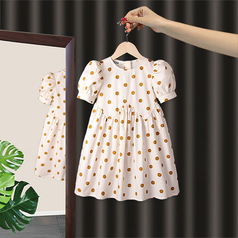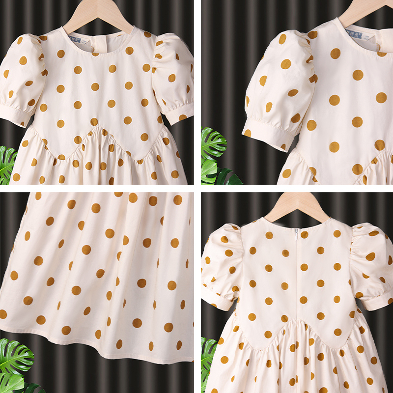 泡泡袖 女童波点连衣裙夏季 纯棉儿童裙子中大童法式 短袖 公主裙 新款