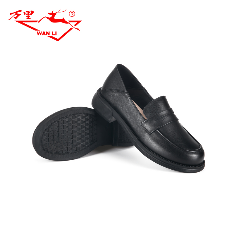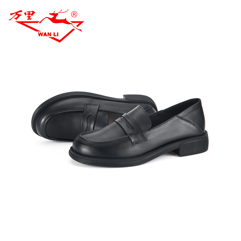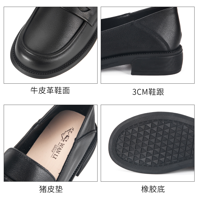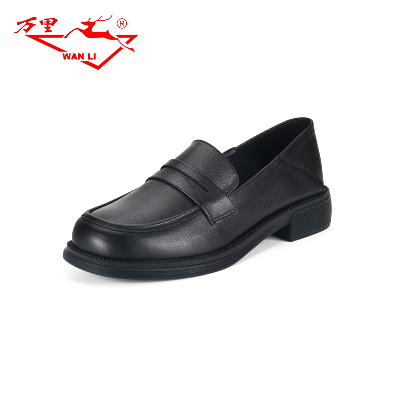 百搭粗跟一脚蹬单鞋 英伦风真皮乐福鞋 BOT2275 休闲女鞋 万里新款