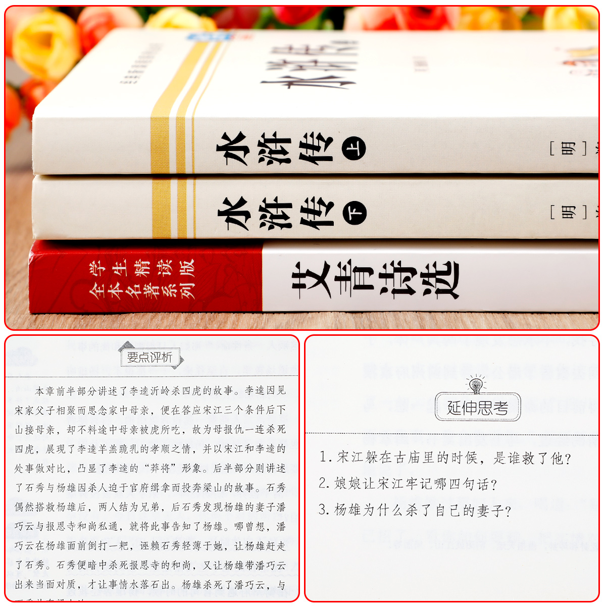 配套人教版 人民文学教育出版 艾青诗选和水浒传正版 无删减九年级上册课外阅读书籍必读名著初中生初三书目9上推荐 社 原著完整版