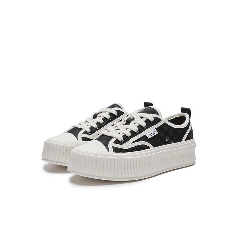 女软底运动休闲鞋 人本松糕厚底摇摇鞋 增高帆布鞋 女鞋 黑白 春夏单鞋
