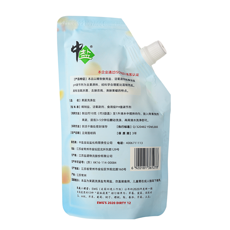 中盐果蔬洗涤盐400g 3包果蔬净安全无残留清洁家用洗菜盐食品级