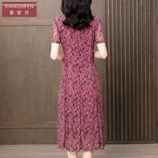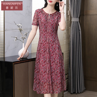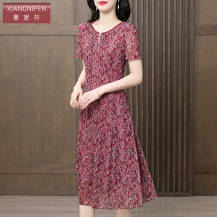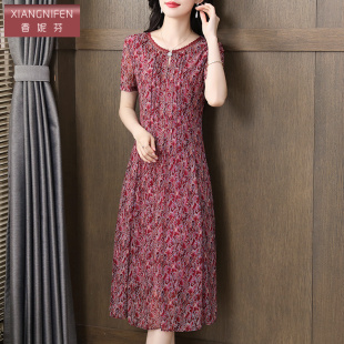 裙子 气质妈妈连衣裙小个子遮肚子显瘦碎花短袖 香妮芬夏季 2025新款