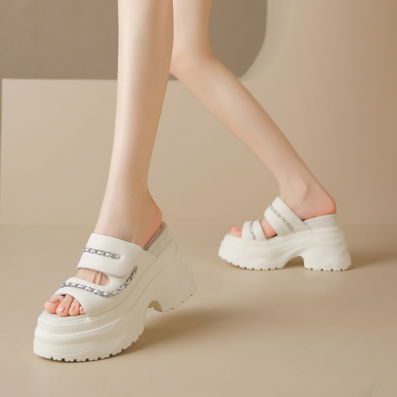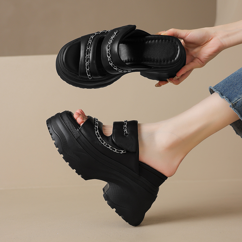 小个子一脚蹬超高跟拖鞋 12cm内增高女鞋 鱼嘴透气坡跟凉鞋 新款 夏季