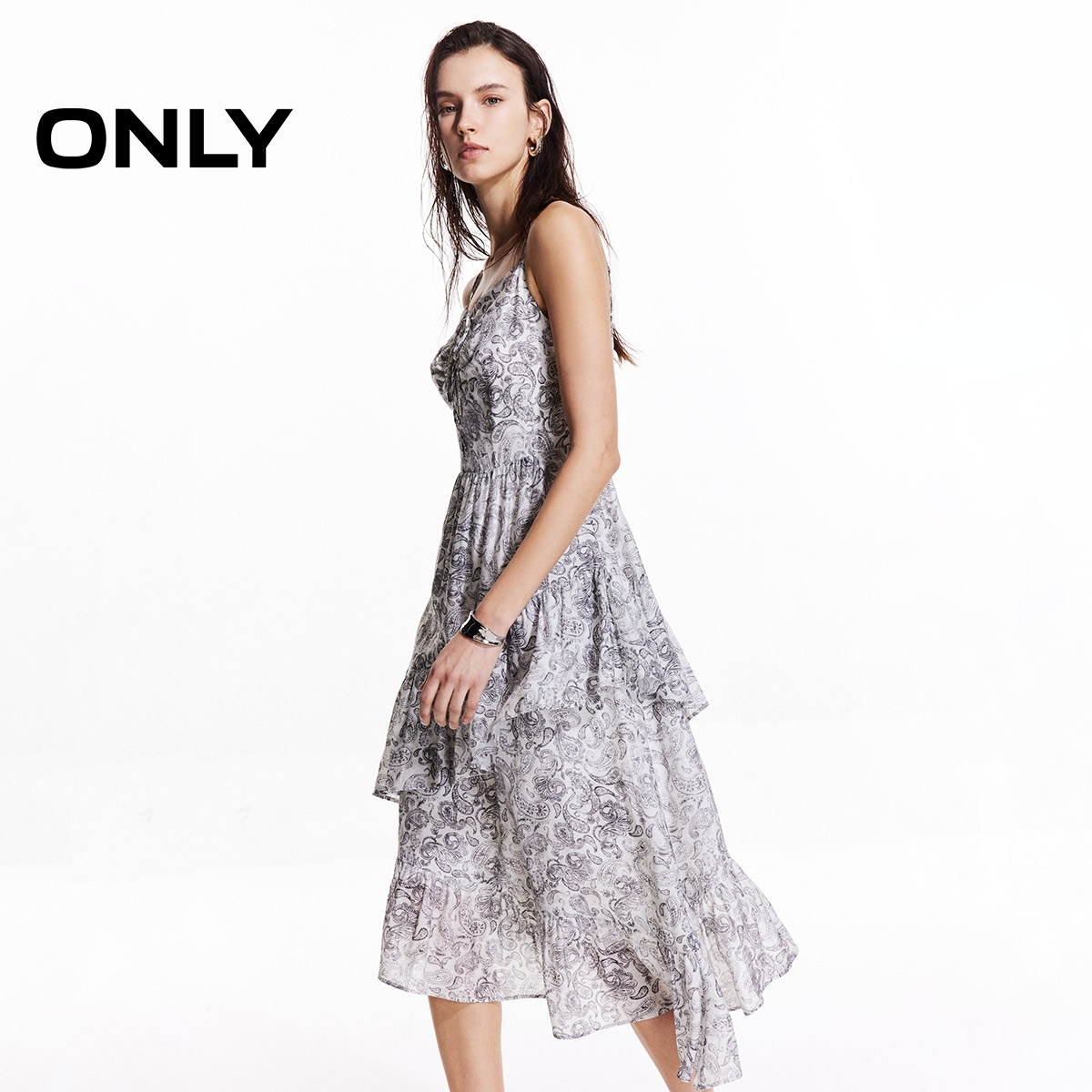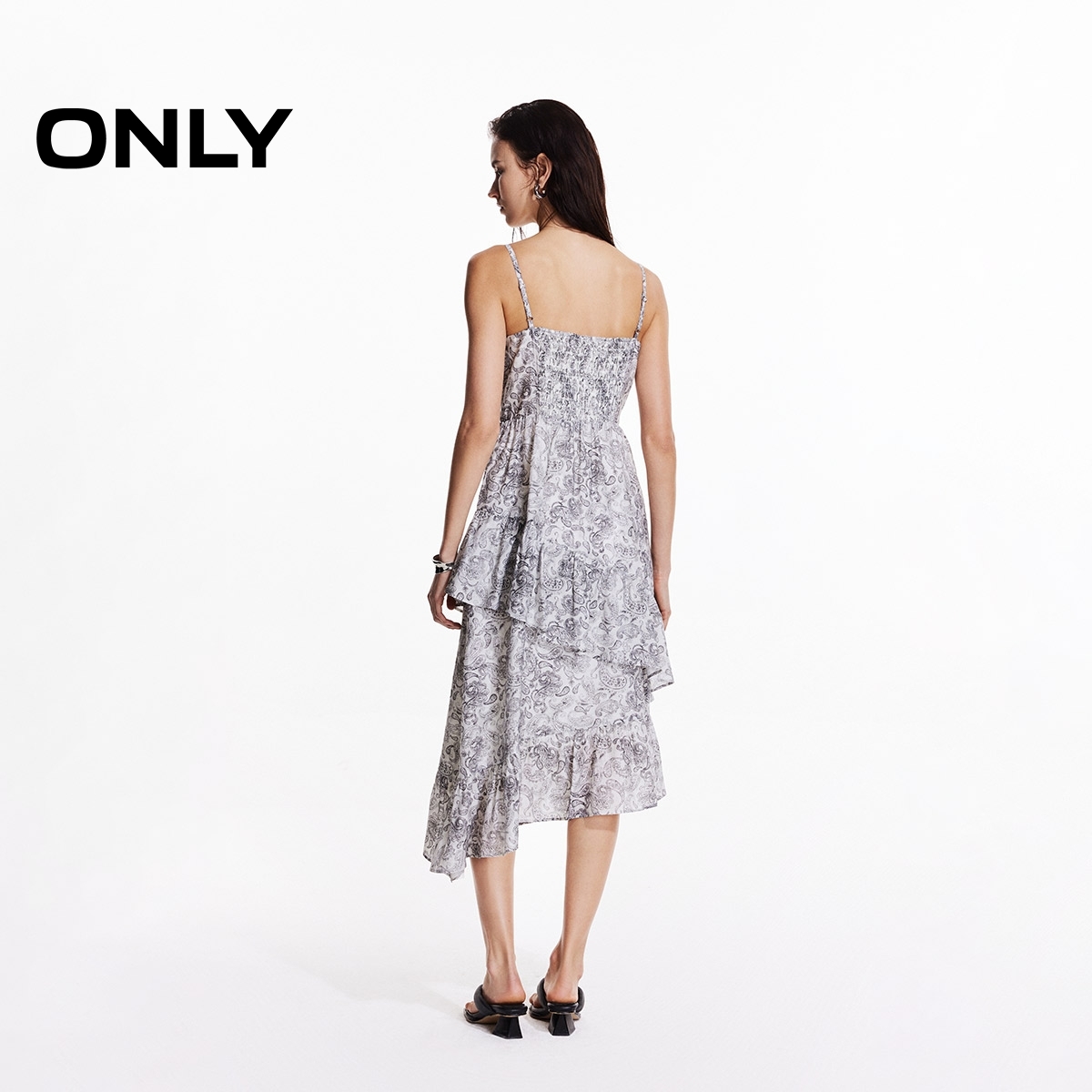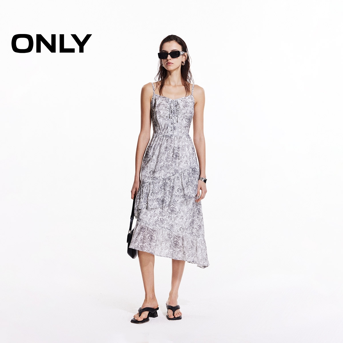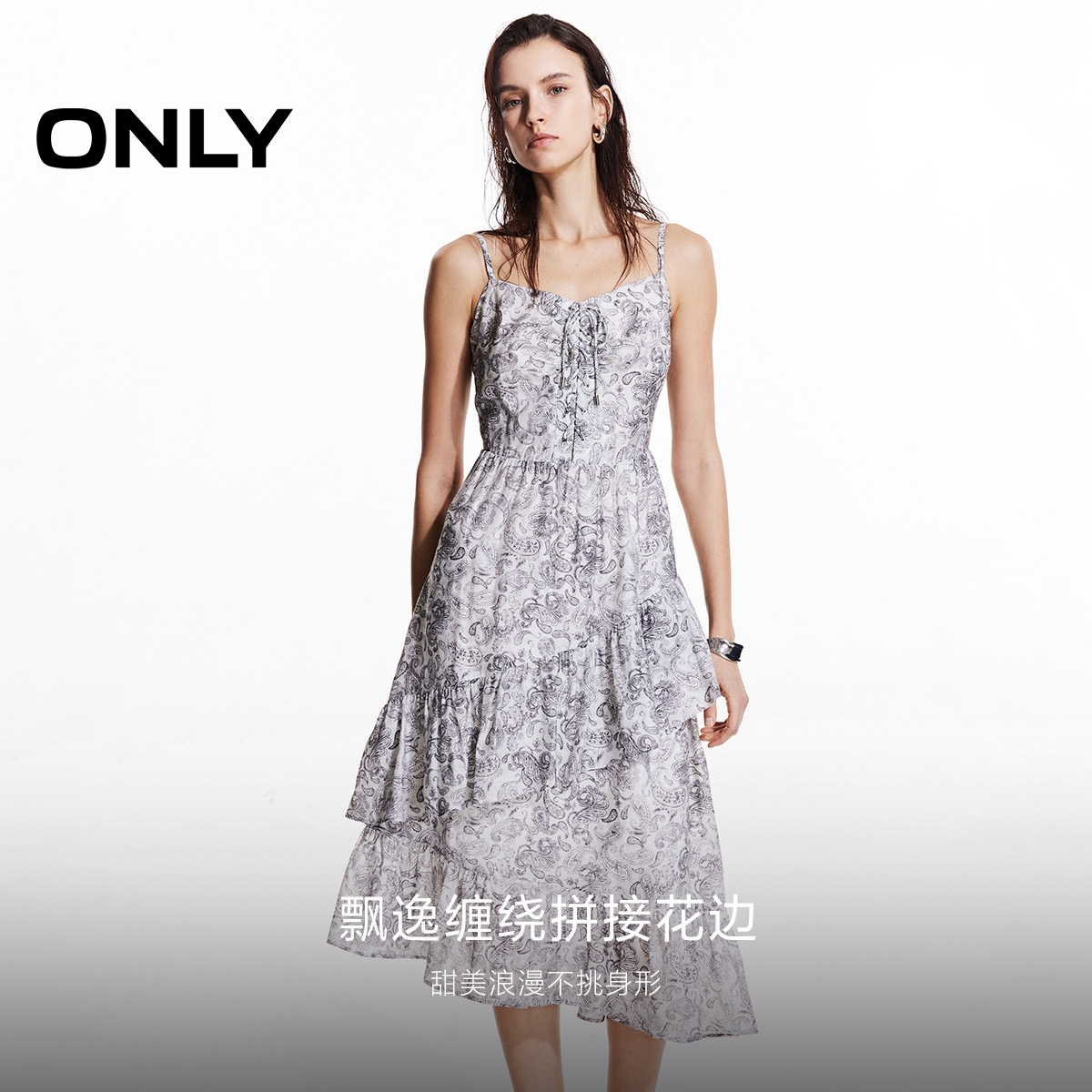 吊带连衣裙女 设计感绑带印花拼接花边中长款 ONLY2025夏季 新款
