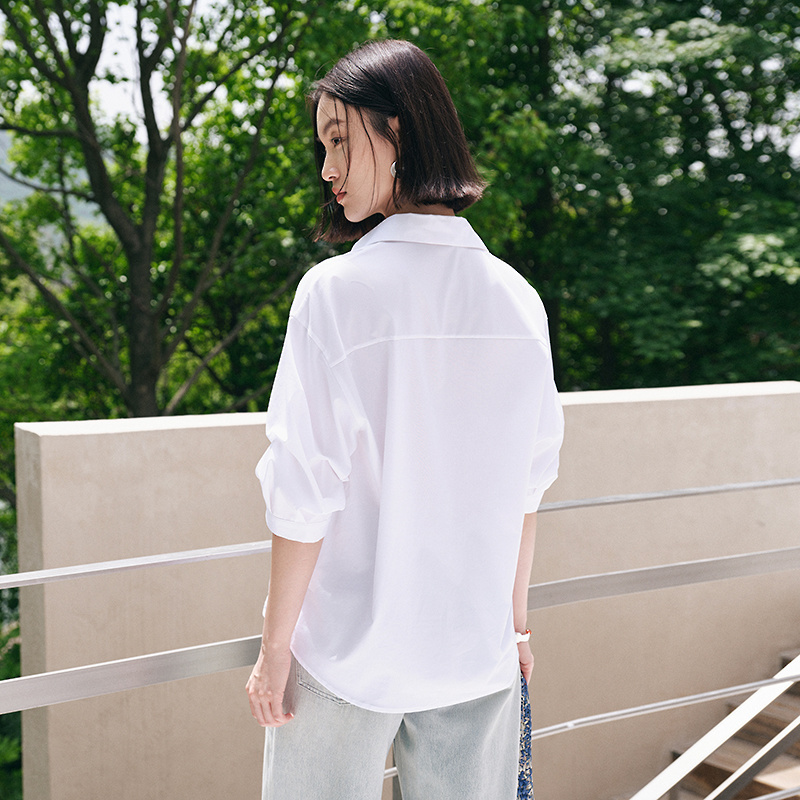 白色蕾丝设计衬衣 女MOFAN摩凡2025夏款 优雅淑女五分袖 V领休闲衬衫