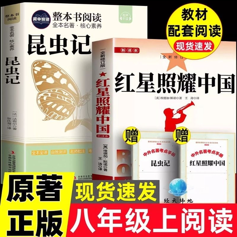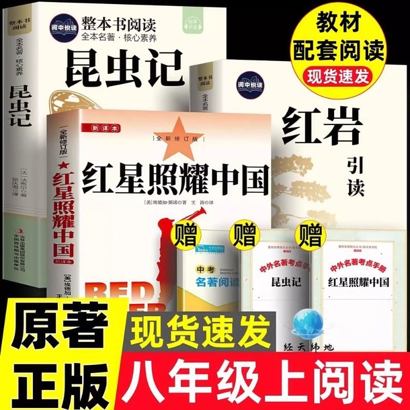 初中初二课外阅读书籍昆虫记八年级上册小说文学考点配套新版 常谈钢铁是怎样炼成 原著红岩八年级必读名著完整版 红星照耀中国正版