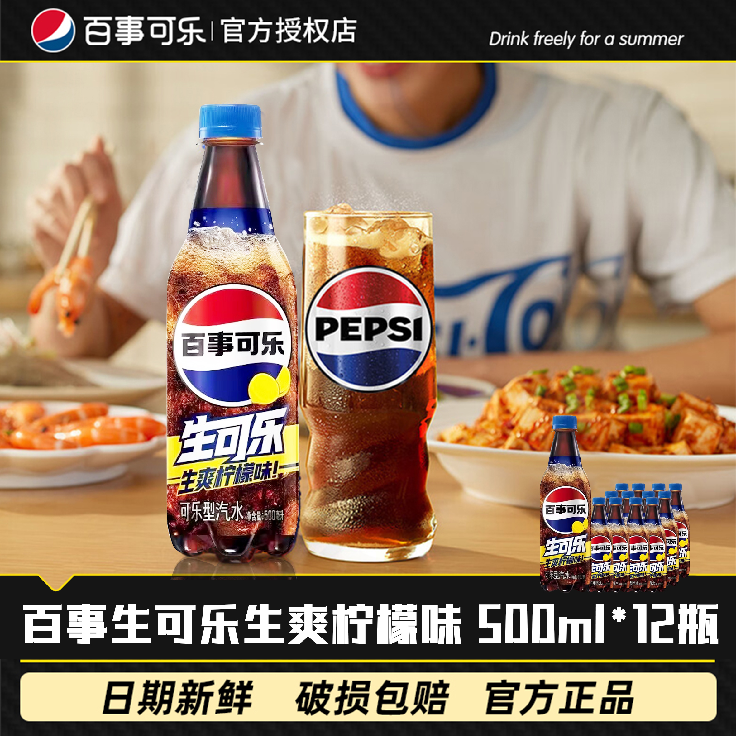 12瓶整箱碳酸饮料饮品 百事可乐生可乐柠檬味500ml 活动促销