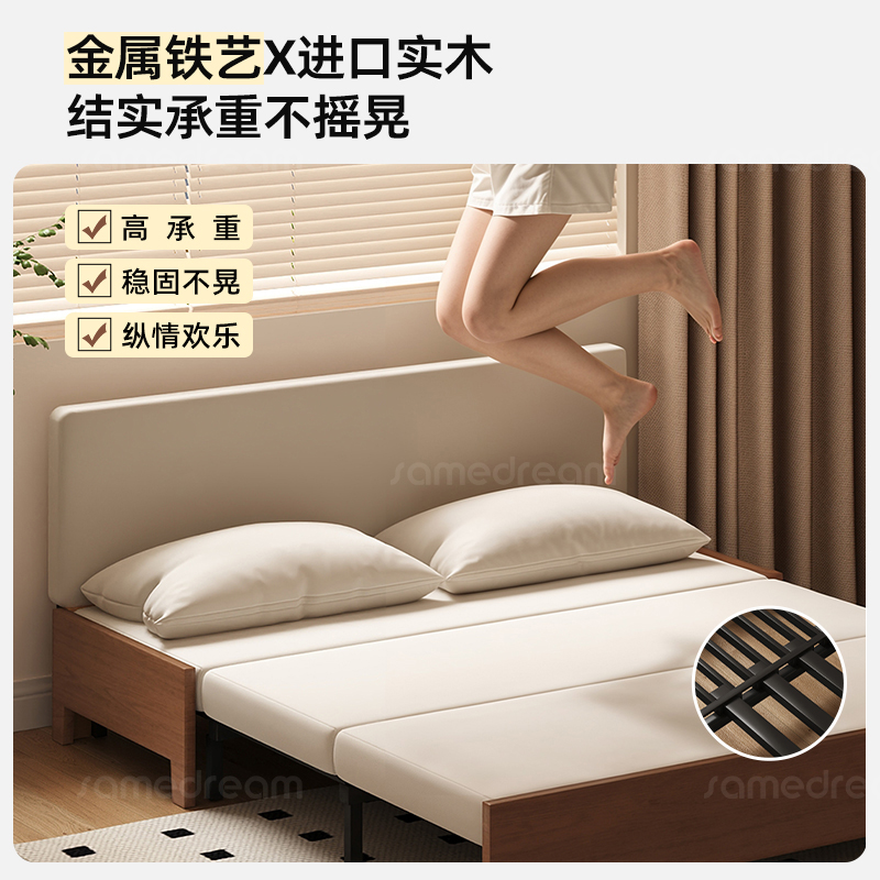 三梦中古风沙发床两用2025新款 小户型客厅可折叠双人伸缩沙发实木