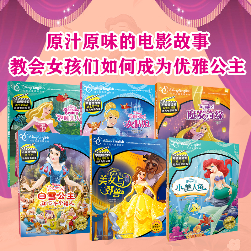 共6册 迪士尼公司9787304092511 不能错过 美 12岁 套装 电影故事系列:如何成为一个优雅公主 迪士尼双语经典 当当图书