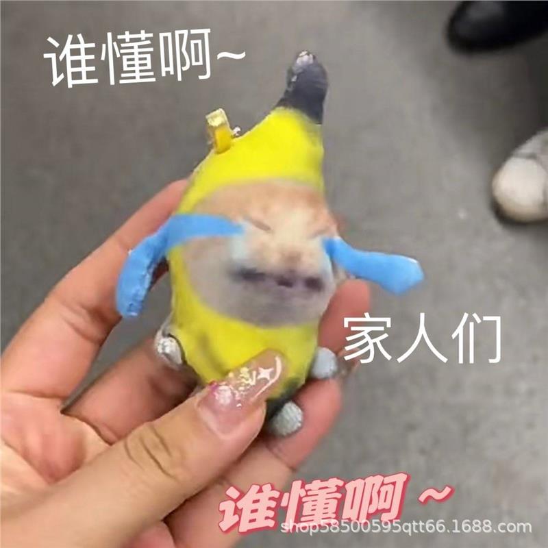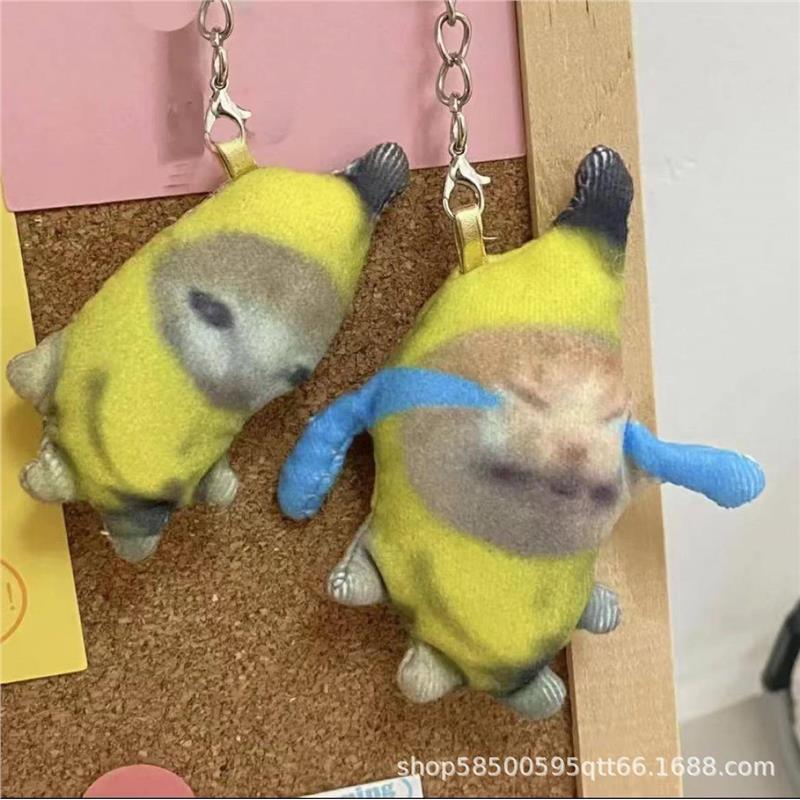 香蕉猫happy猫挂饰会发声会哭泣毛绒玩具玩偶仿真食物挂件钥匙扣