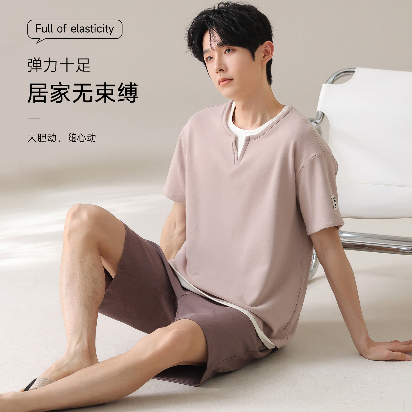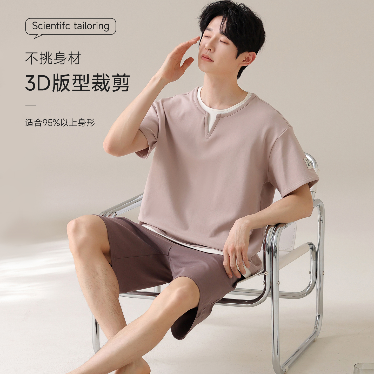 薄纯棉短袖 可外穿家居服套装 2025新款 宽松大码 男士 猫人睡衣男夏季
