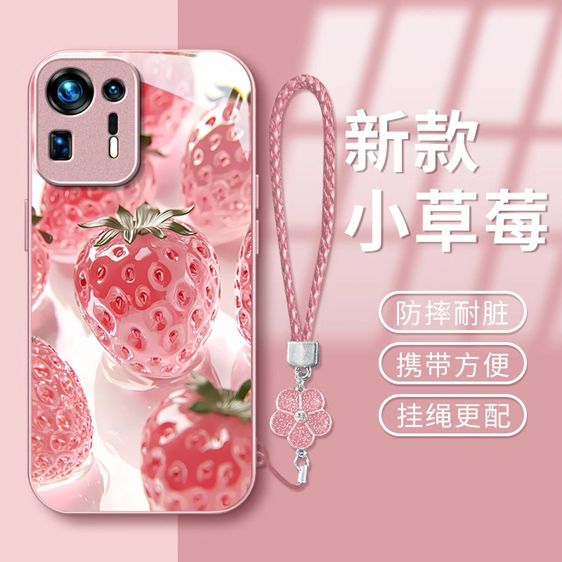 防摔保护套高级感MIX全包高端硬壳潮 创意水晶苹果ins带挂绳 适用小米MIX4手机壳XIaomi新女款 金属漆玻璃个性