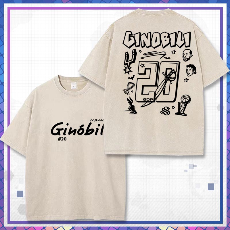 妖刀马努吉诺比利涂鸦马刺队球星20复古水洗短袖 T恤男女夏季