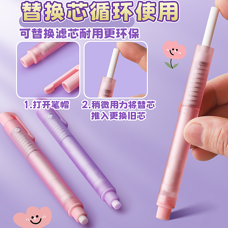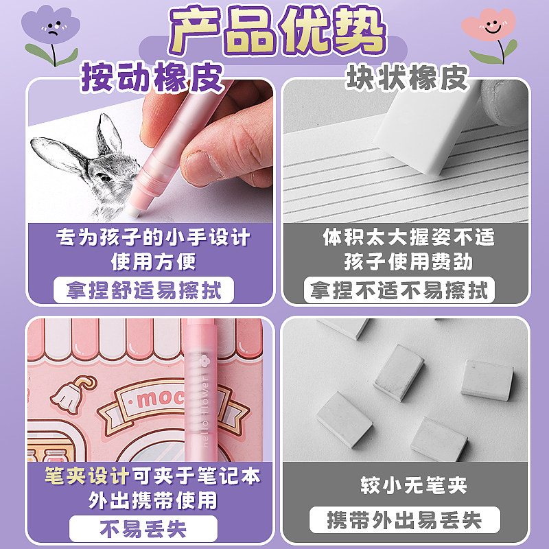 猫太子粗杆橡皮笔省力无屑超干净小学生无毒不留痕橡皮擦防丢考试铅笔素描美术生专用笔型儿童擦字成线可擦笔