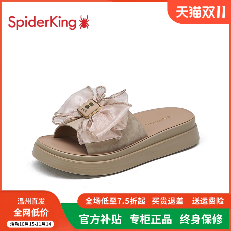 女 增高配裙防滑一字凉拖鞋 蜘蛛王厚底拖鞋 女夏外穿蝴蝶结2025新款