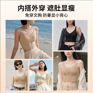 润微一拉薄大胸显小内衣女吊带背心内搭外穿隐形防下垂秒穿脱背心