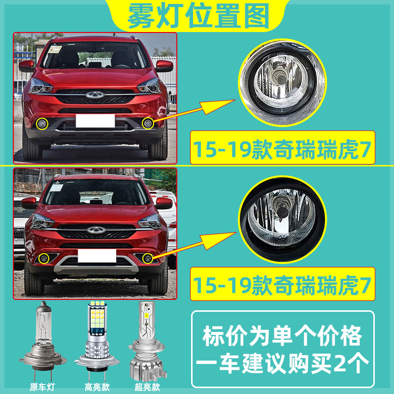 黄金光LED爆闪17雾灯16灯泡18配件改装 适用奇瑞瑞虎7雾灯15 19款